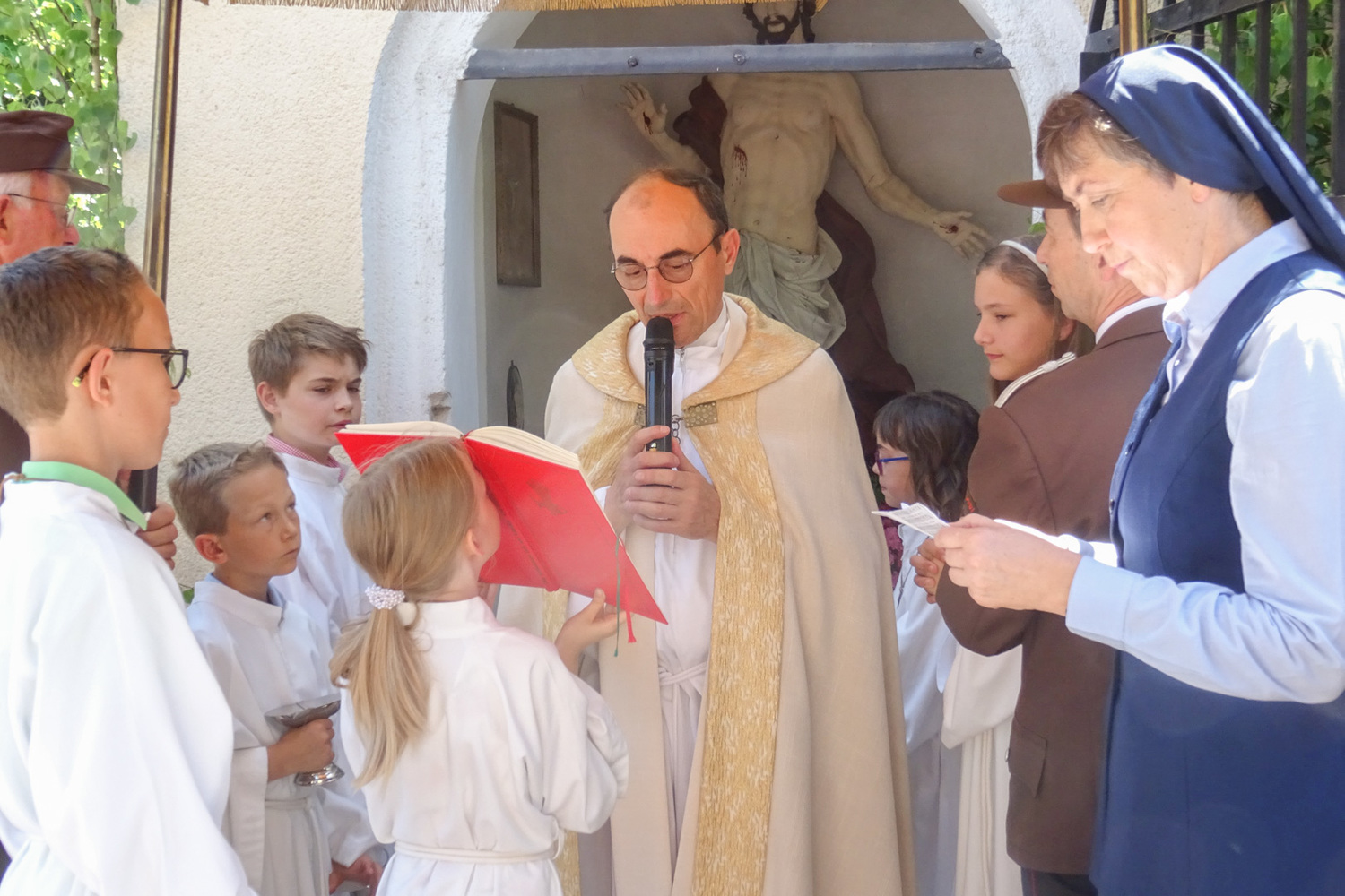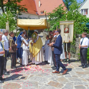 Heilige Messe mit anschließender Fronleichnamsprozession mit Pfarrer Johann Karner in Dobl.