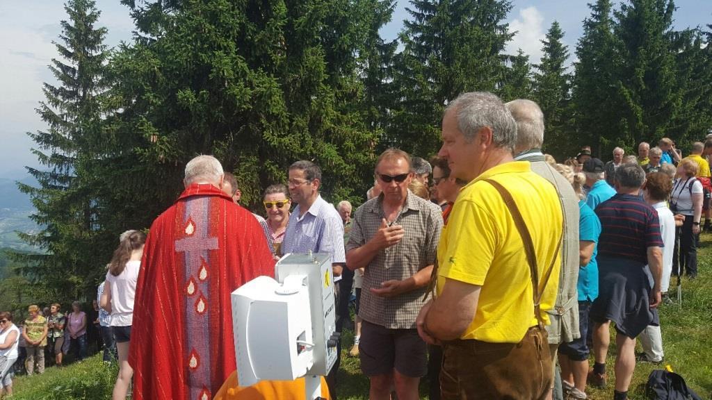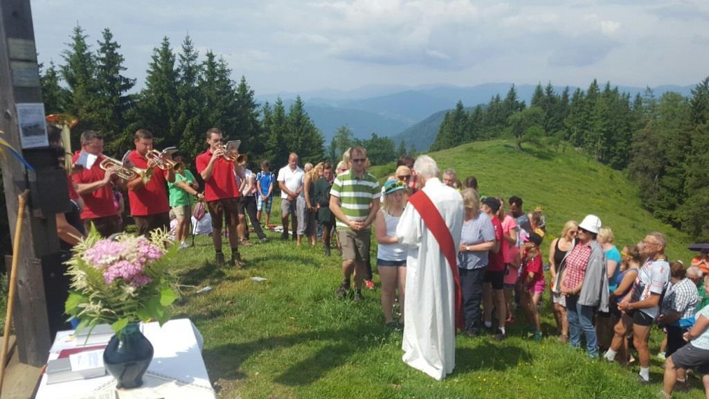 Bei prächtigem Wetter kamen wieder sehr viele Wanderer auf dem Hoaterberg zur Gipfelkreuzmesse, welche von Pater Simon Orec gemeinsam mit dem Diakon von Pernegg Hermann Kicker gefeiert wurde.