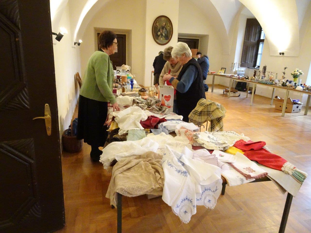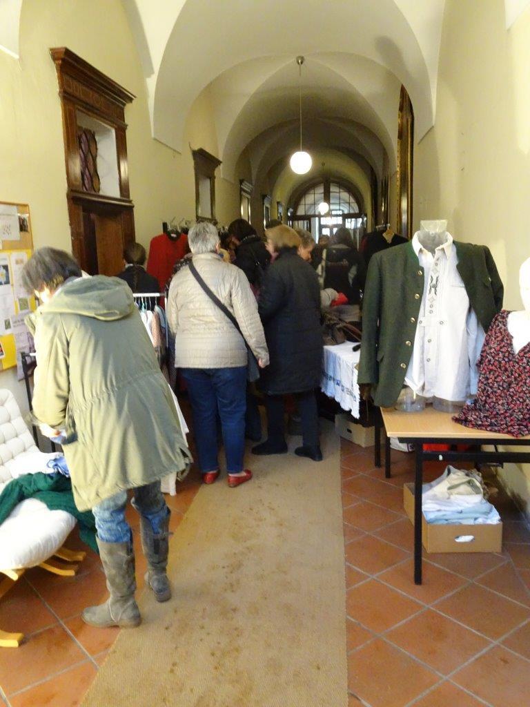 Gleichzeitig organisierte der örtliche Frauentreff unter der Leitung von Edith Grundauer-Leski und Gabi Prietl den Verkauf von Trachteng`wand aus 2ter Hand im Jugendraum und im Klostergang.
