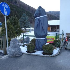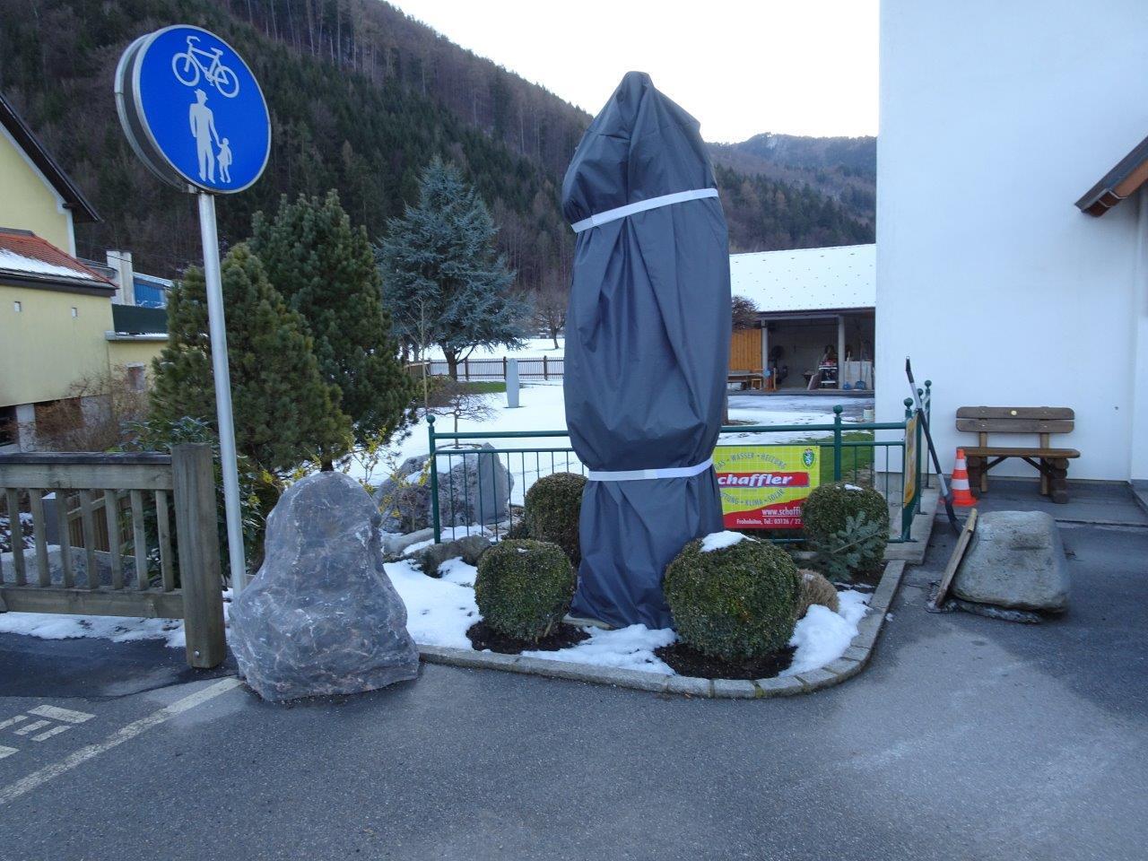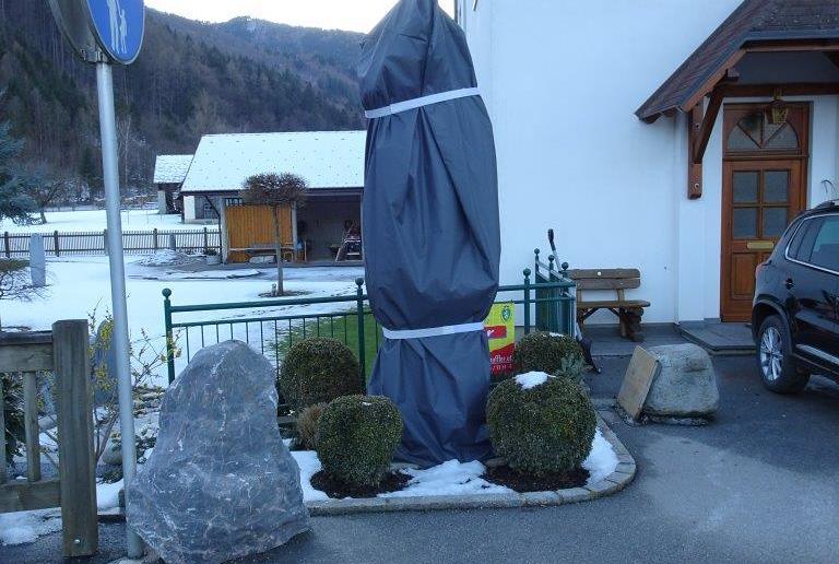 Die im Vorjahr frisch restaurierte Sandsteinstatue des Hl. Johannes Nepomuk bei der Brücke über den Gamsbach wurde vom besorgten Anrainer im heurigen Winter mit einer Schutzhülle ummantelt, um wieder starke Verunreinigungen durch die Salzstreuung der vorbeiführenden Landesstraße 121 zu verhindern. Eine sehr lobenswerte Aktion!