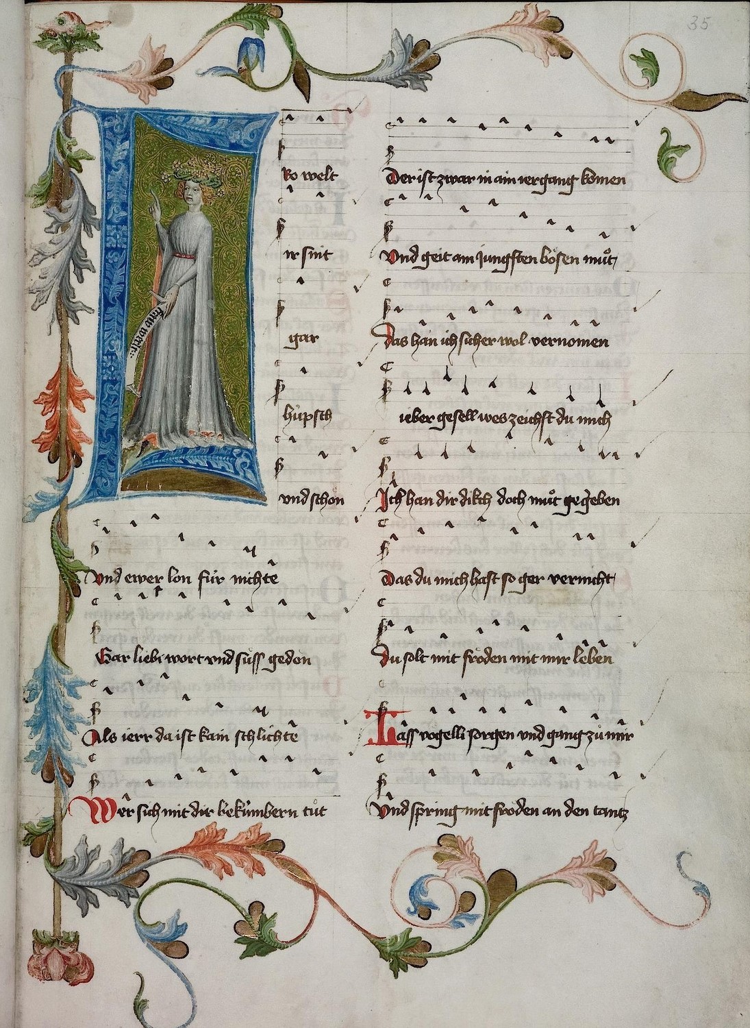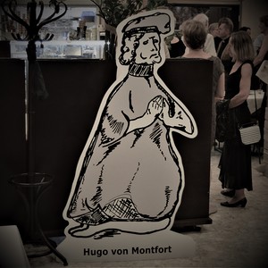 Vermutlich um 1414 – also auf dem Höhepunkt seiner Macht – ließ Graf Hugo von Montfort in Wien oder in der Steiermark jene Prachthandschrift seiner poetischen Werke anfertigen, die in der Heidelberger Universitätsbib­liothek liegt: 40 Dichtungen in frühneu­hochdeutscher, stark alemannisch gefärbter Sprache überliefert diese z.T. bebilderte und mit 10 Notenaufzeich­nungen versehene Handschrift, aber nur die ersten 38 Texte dürften tatsäch­lich von Hugo stammen, denn Nr. 39 und 40 wurden erst nach seinem Tod eingetragen und weisen auf eine fremde Autorschaft hin. In den ersten 38, sicher ‘echten’ Hugo-Texten begegnet uns (in Form poetischer Reden, Briefe und Lie­der) ein tief gläubiger, geradliniger Mensch, der sich von hohen morali­schen Idealen beseelt zeigt und neben aller Lebensfreude auch bedrückende Erfahrungen mit Leid und Tod reflek­tiert.