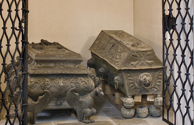 Die Grabanlage neben dem Michaelsaltar wurde wohl bereits im 17. Jahrhundert errichtet und zuletzt 1994 renoviert. Der kleine rechteckige Anbau enthält heute drei Zinnsärge der Stifterfamilie Eggenberg.