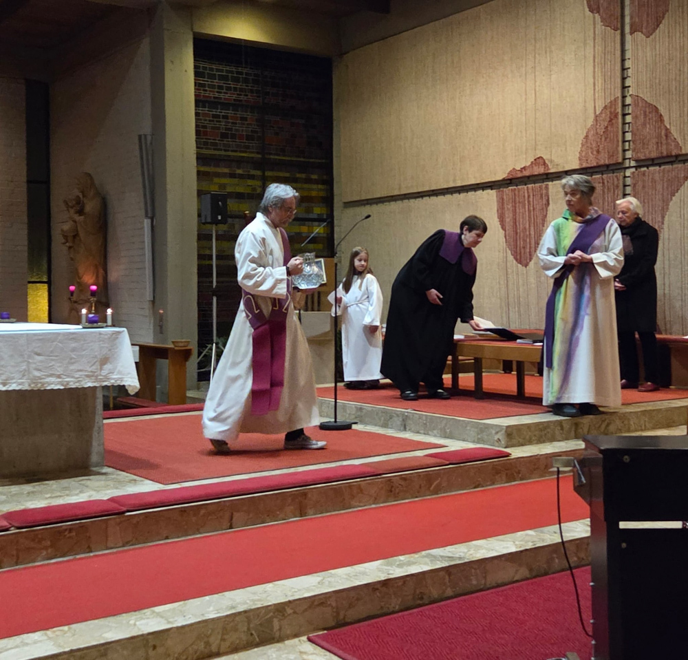Jesus selbst ist das lebendige Wasser, das alle stärkt und neues Leben schenkt. Das Kreuzzeichen, das die Liturgen mit dem Wasser aus dem Taufbecken in unsere offene Hand zeichnen, erneuert unsere Taufe. Es soll uns daran erinnern, dass wir von Gott angenommen sind.